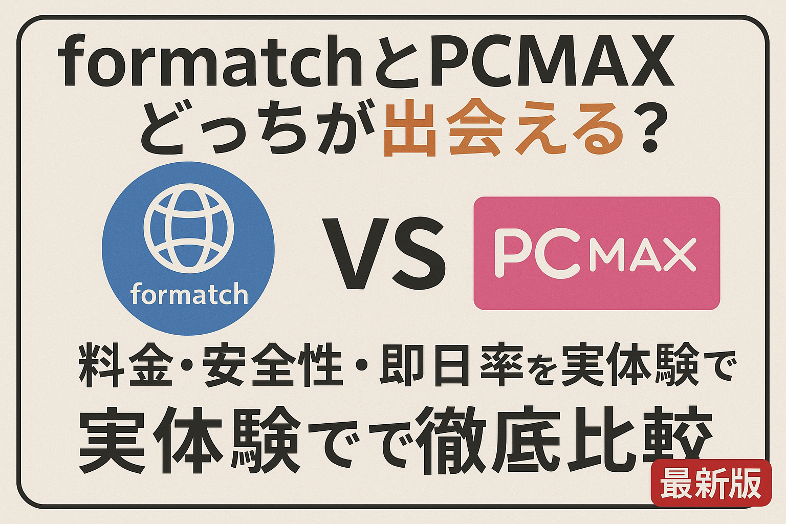 この記事では、私(40代男性)が実際にformatch(フォーマッチ)とPCMAXの両方を使い、実際に女性と会った体験談・即日で出会えたケース・失敗談・料金のリアルを徹底的に比較しました。