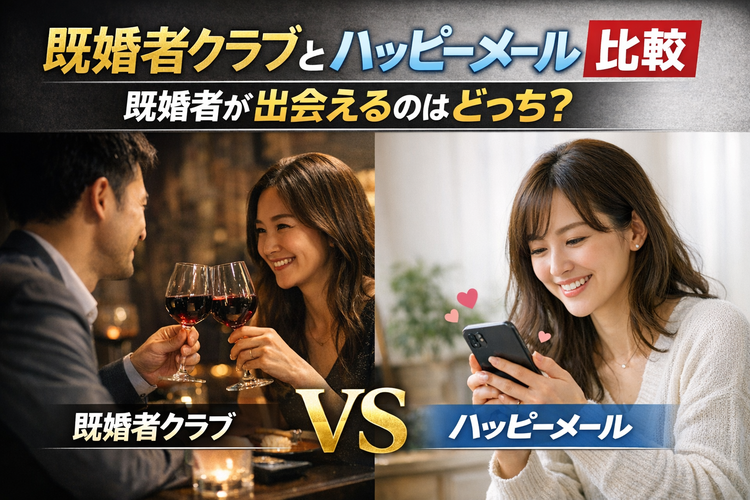 まず結論から言うと、既婚者が効率よく出会えるのは既婚者クラブです。ただし、ハッピーメールでも出会える可能性は十分にあり、使い方によって結果は大きく変わります。