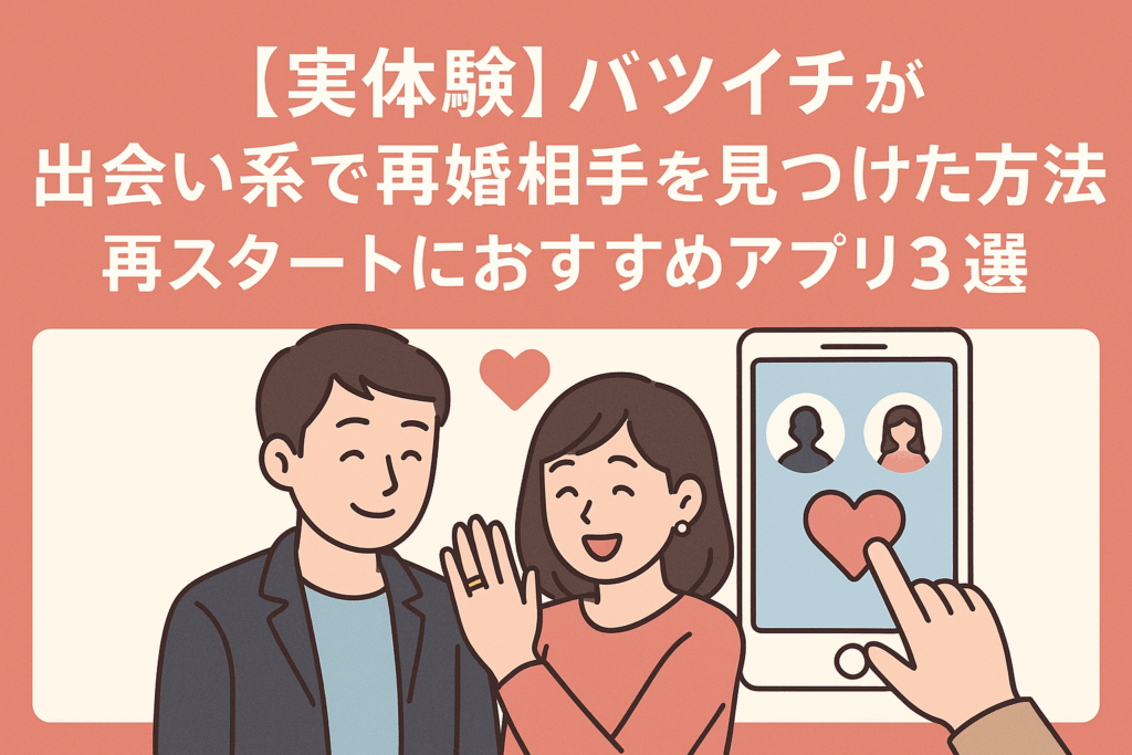 離婚を経験した後、「もう恋愛なんて無理だ」と思っていた自分が、まさか出会い系アプリで再婚相手を見つけるとは思ってもいませんでした。バツイチの男性にとって、再婚は「再スタート」そのもの。とはいえ、現実問題として「出会いがない」「出会い系っ... -