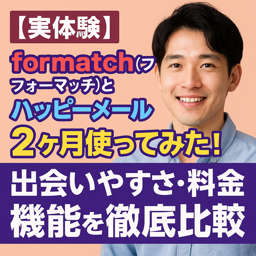 マッチングアプリをいくつも試してきたけれど、「本当に出会えるのはどれ?」と迷っていませんか?僕も同じように悩んでいました。そこで今回は、話題のマッチングアプリ【formatch(フォーマッチ)】と老舗の出会い系アプリ【ハッピーメール】を実際に2ヶ... -