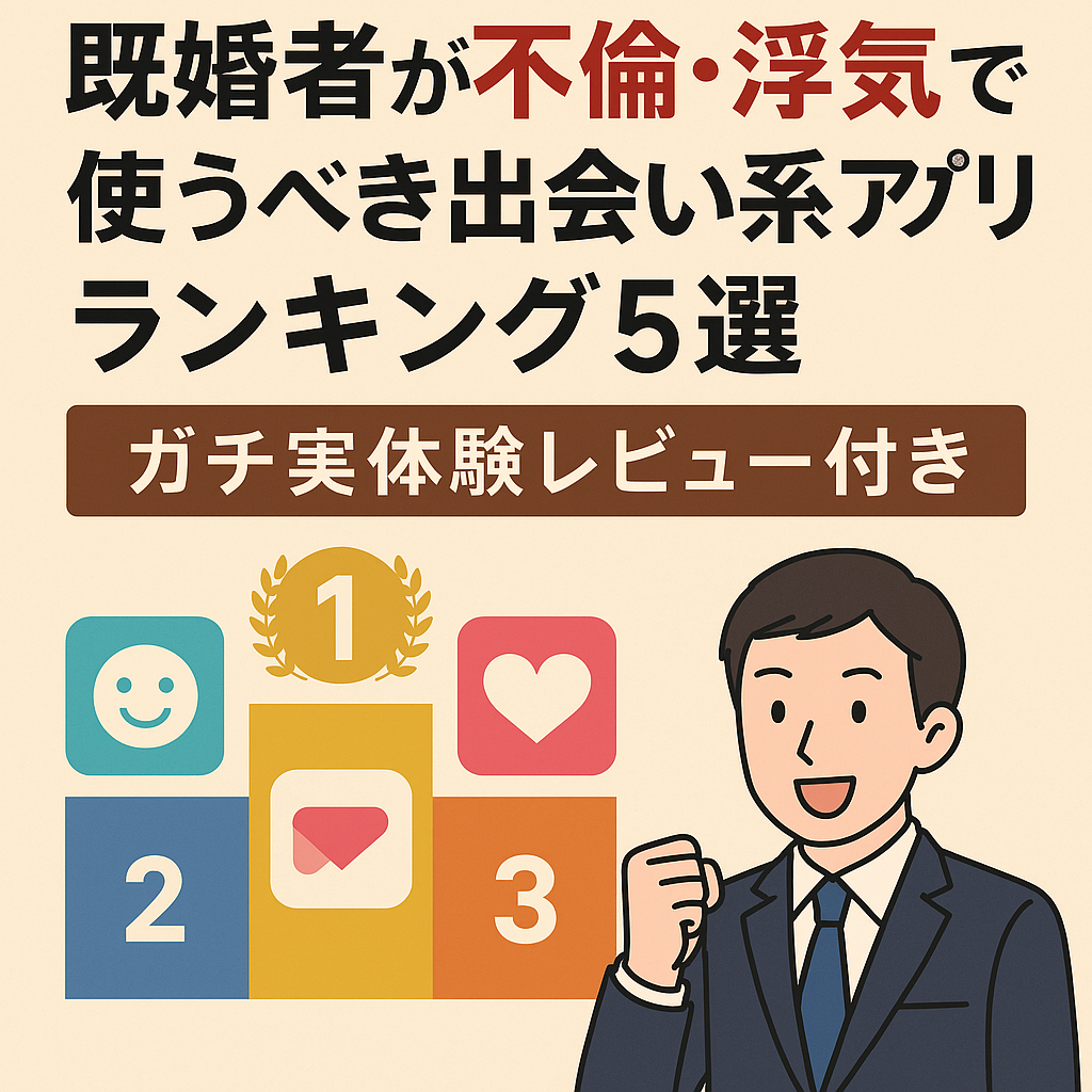 この記事では、既婚者が実際に不倫・浮気で使って「本当に出会えた」と感じた出会い系アプリを、実体験レビューを交えてランキング形式で紹介します。競合の記事では料金や口コミだけを並べているものが多いですが、ここではリアルな使用感・出会い方・評...