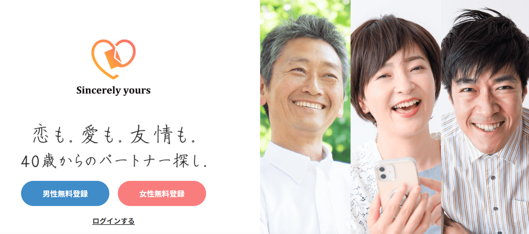 しかし、今回ご紹介するシンシアリーユアーズ(Sincerely yours)は、中高年向けに特化した出会い系として、実際に出会える可能性が高いサービスです。