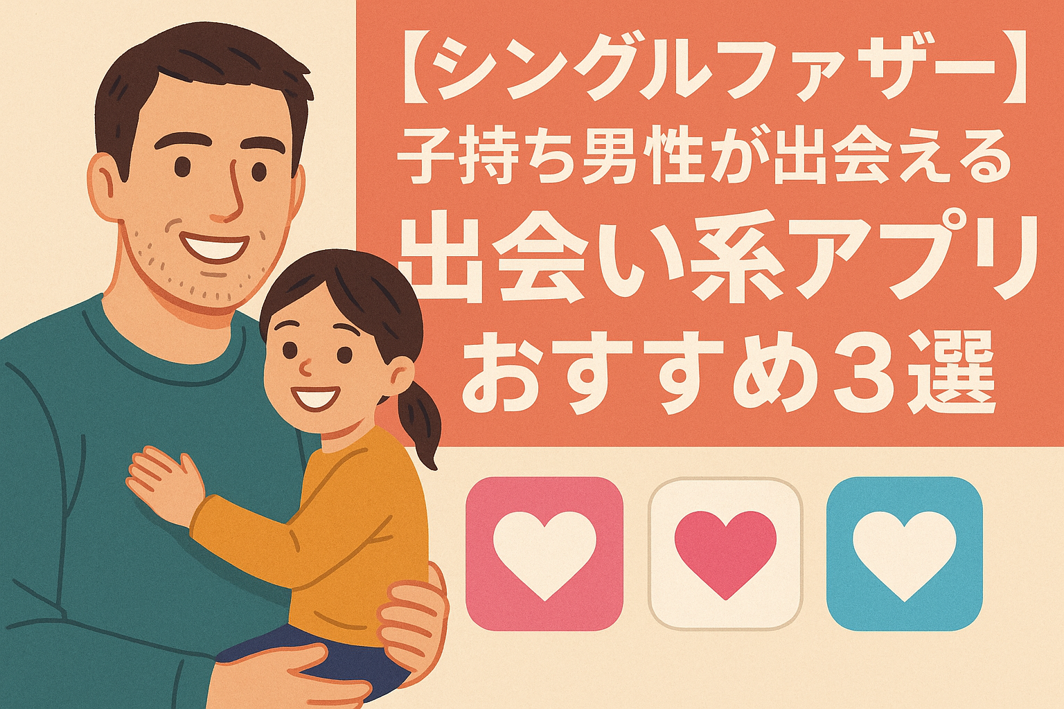 この記事では、シングルファーザーである子持ち男性が、理解ある女性と出会うために実際に使える出会い系アプリを厳選し、実体験を交えながら詳しく解説します。