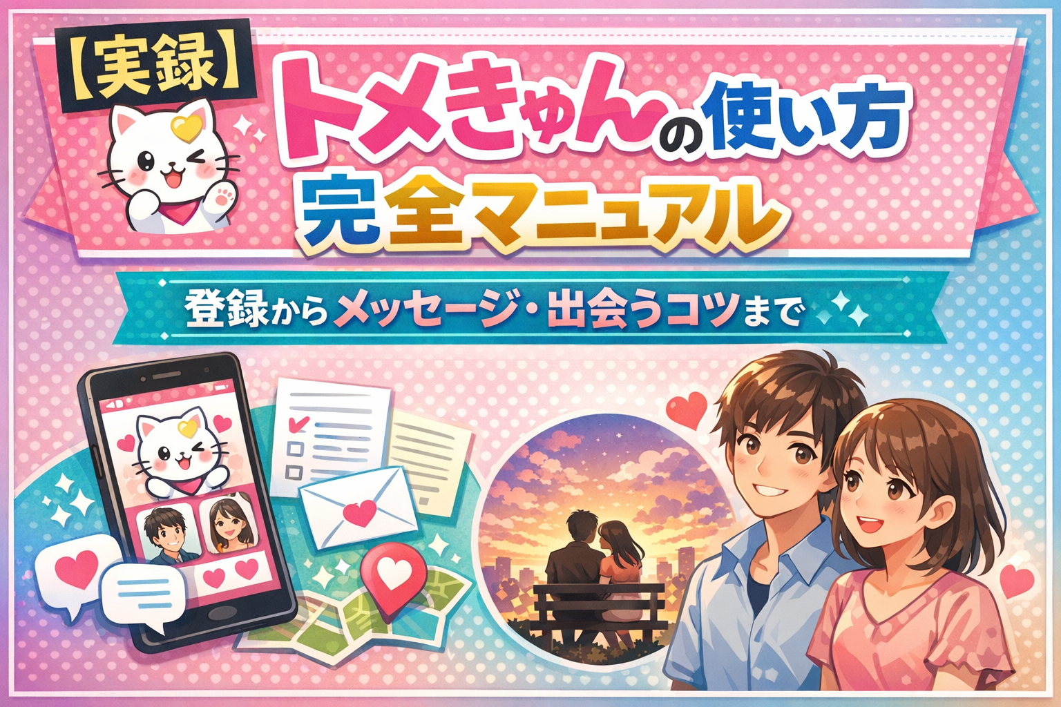この記事では、出会い系サービス「トメきゅん」について、実際に使ってみた実体験をもとに、登録からメッセージ、実際に出会うまでの流れを完全マニュアルとしてまとめています。